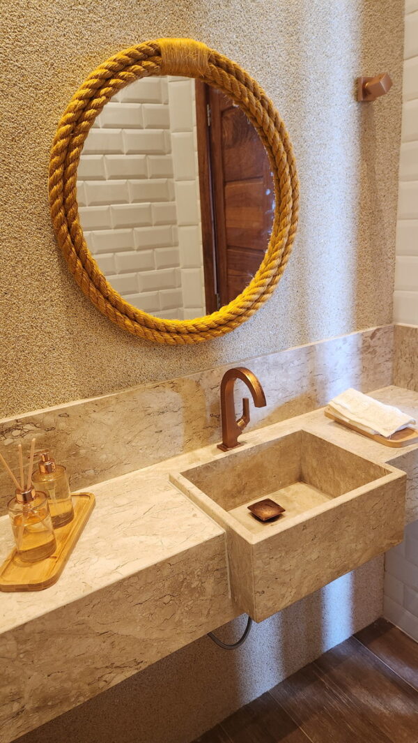 Cada detalhe reflete o cuidado com a estética e a funcionalidade, trazendo um toque rústico e moderno para decorar seus espaços com personalidade. Sua estrutura única transforma o espelho em muito mais do que um objeto funcional: é uma obra que celebra o encontro entre o rústico e o vibrante.